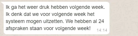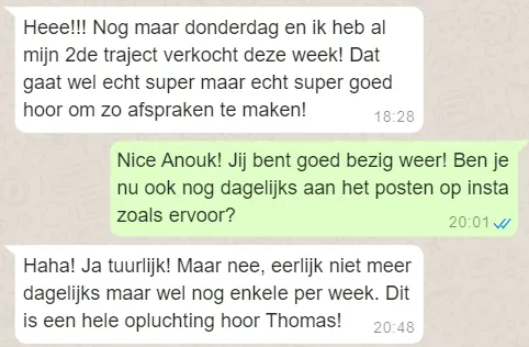 Ik werk zelf als online coach en de omzet bleef maar schommelen, wat ik echt niet fijn vond! Met mijn nieuwe afspraken-systeem, had ik al binnen 3 dagen, 3 nieuwe afspraken. Wat ik echt super tof vond.